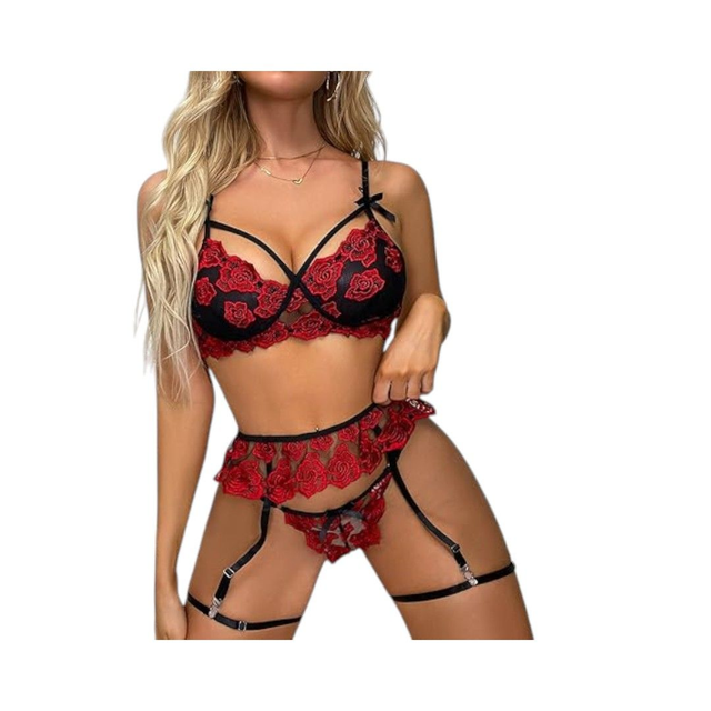 Despierta tus sentidos con este set de lencería irresistiblemente sensual. Los delicados encajes, sus detalles de transparencia y las elegantes ligas te envolverán en una sensación de confort y lujo. Su diseño elástico se adapta a tu cuerpo a la perfección, realzando tus curvas con suavidad.