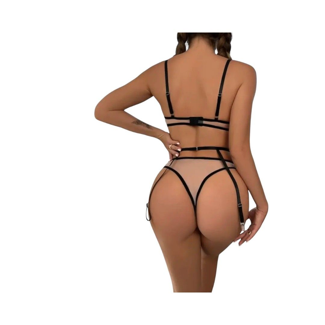 Despierta tus sentidos con este set de lencería, irresistiblemente sensual. El delicado diseño y las elegantes ligas te envolverán en una sensación de confort y lujo. Su elástico se adapta a tu cuerpo a la perfección, realzando tus curvas con suavidad.