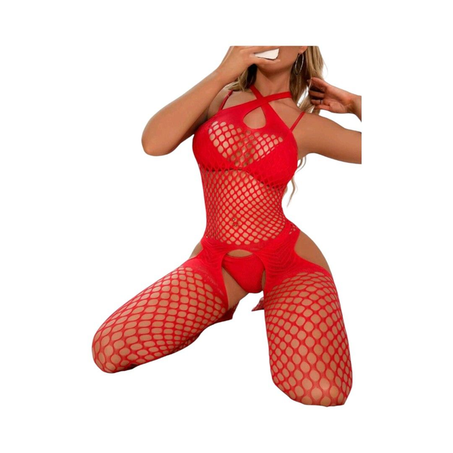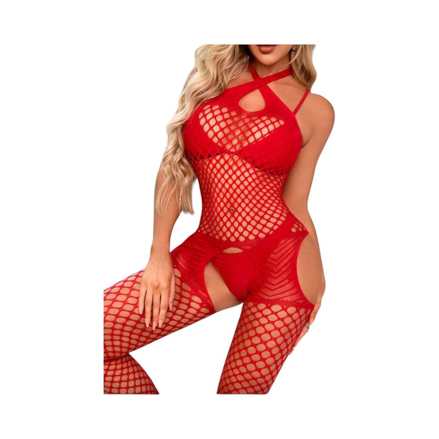 Sensual media de cuerpo entero de abertura, transparente, sin costura ni forro.