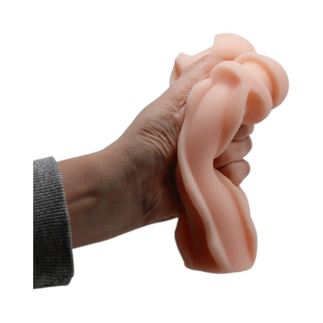Está fabricado en material Cyberskin (TPR) que simula la textura natural de la piel. La carcasa exterior es firme pero flexible para que puedas apretar y ejercer mayor presión donde desees.