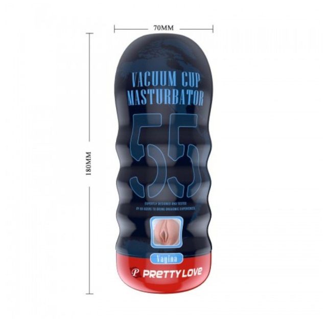 Vacuum Cup 55 Vagina de Pretty Love es un novedoso masturbador para hombres que posee una textura muy realista de alta calidad que se siente muy natural al tacto. Simula la penetración vaginal gracias a su orificio de entrada y textura interior; además es super elasticado y se adapta fácilmente a cualquier tamaño.