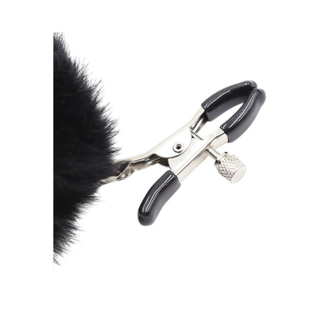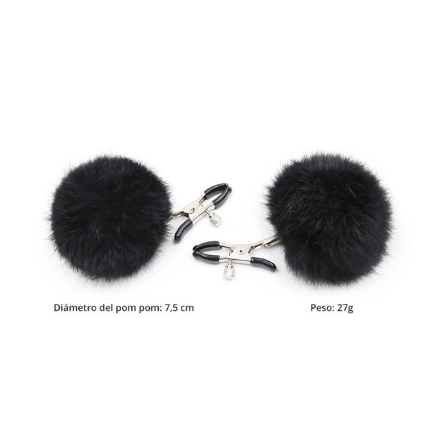 Experimenta con la estimulación de los pezones de la manera más excitante. Añade un toque de suavidad y cosquillas a la presión de las pinzas metálicas con un original pompón negro.